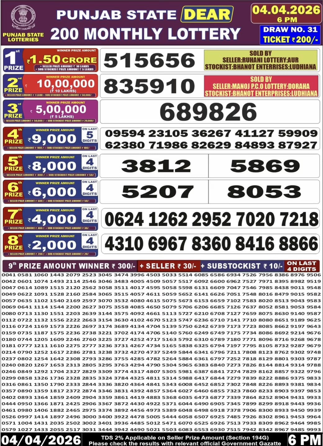 Rajshree Ravi Weekly Lottery 29.03.2026 Result 2.25 PM 0 Likes 31 Views Related Articles 20 211Punjab State Dear 50 Jackal Saturday 6pm Lottery Result 03.01.2026 0 52Maharashtra Ganeshlaxmi Vijayee Weekly Draw 25.02.2026 Result 5 PM 0 22Punjab State Dear 200 Monthly Lottery 04.04.2026 Result 6 PM 0 48Maharashtra Padmini Weekly Draw Result 17.2.2026