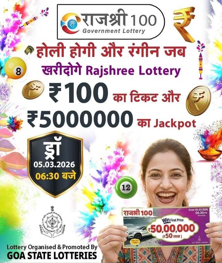 Rajshree Shani Weekly Lottery 21.03.2026 Result 2.25 PM 0 Likes 50 Views Related Articles 0 92Punjab State Dear 50 Beast Monday 6pm Lottery Result 10.11.2025 0 198Rajshree 75 monthly lottery 10 July 2025 At 6.30pm 1 123Rajshree 100 Monthly Lottery 5.3.2026 At 6.30 PM (Happy Holi) 0 42Maharashtra Gajlaxmi Shukra Weekly Draw 20.02.2026 Result 4.45 PM