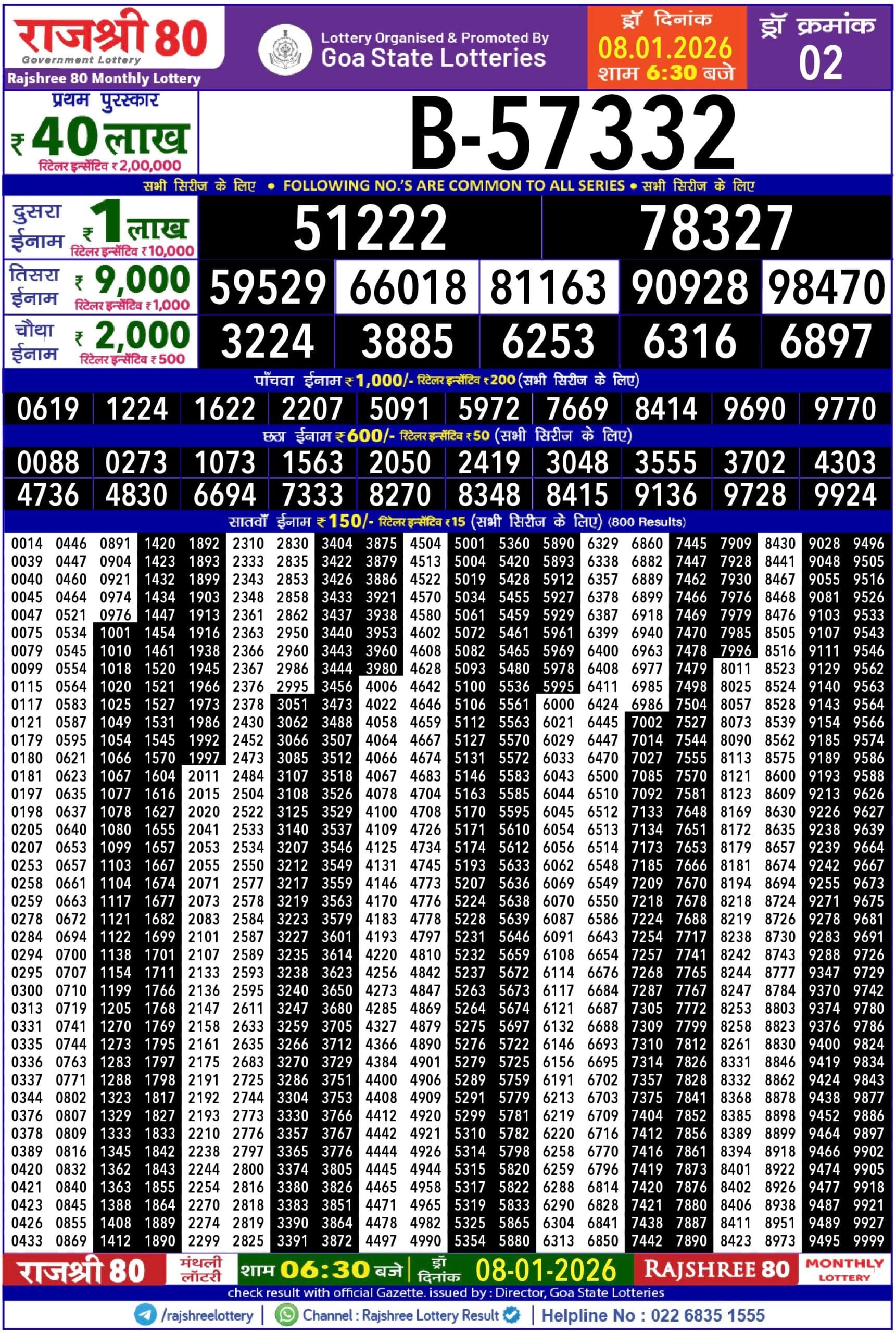 Rajshree Som Weekly Lottery 16.03.2026 Result 2.25 PM 0 Likes 52 Views Related Articles 0 91Maharashtra Gajlaxmi Shukra Weekly Draw 16.01.2026 Result 4.45pm 0 60Sikkim State Labhlaxmi Glad Thursday Weekly Lottery 5.2.2026 Result 4 PM 0 145Maharashtra Gajlaxmi Mangal Weekly Draw 11.11.2025 Result 4.45pm 0 143Rajshree 50 Monthly Lottery 22 January 2026 At 6.30 PM
