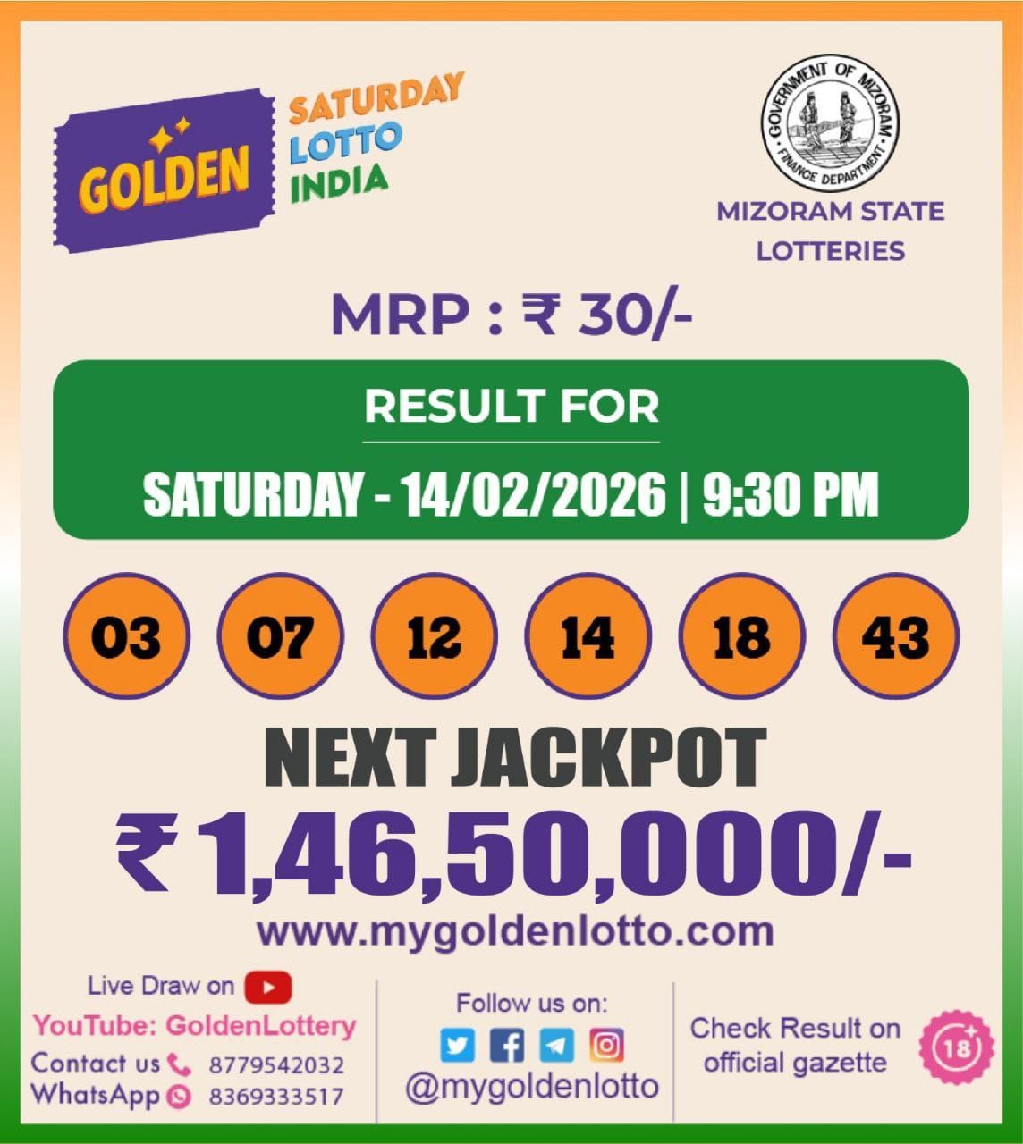 Rajshree som Weekly Lottery 1PM Result 21.07.2025 0 Likes 77 Views Related Articles 0 33Golden Saturday Lotto India 9.30 PM Result 14.2.2026 0 93Maharashtra Sahyadri Mahalaxmi Weekly Draw 02.12.2025 Result 4.30pm 0 42Maharashtra Sahyadri Mahalaxmi Weekly Draw 20.01.2026 Result 4.30pm 0 90Dear Donner lottery 6pm result 19 July 2025