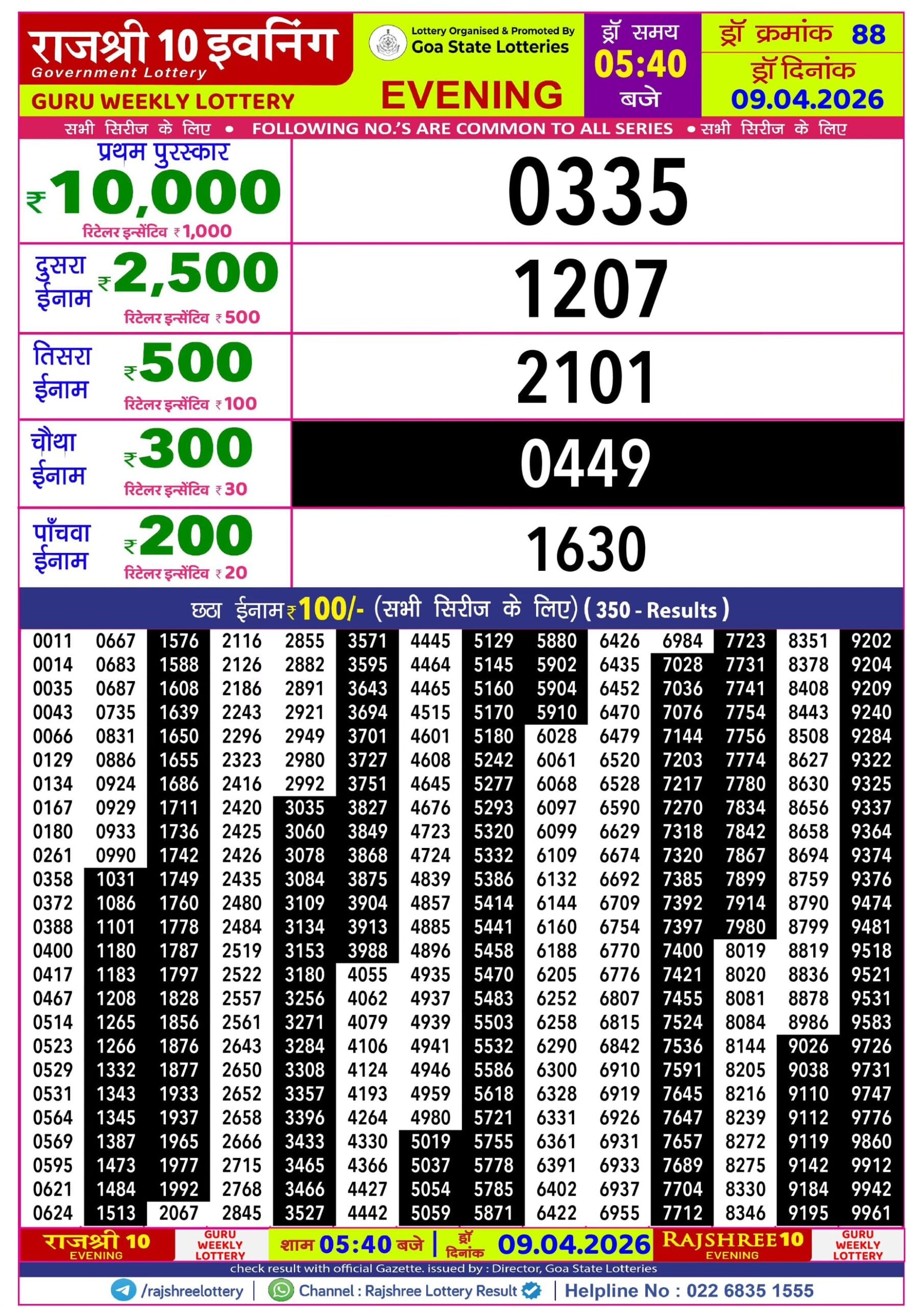 Sikkim State Labhlaxmi Bliss Monday Weekly Lottery 9.2.2026 Result 4 PM 0 Likes 68 Views Related Articles 0 20Rajshree 10 Evening Guru Weekly Lottery 09.04.2026 Result 5.40 PM 0 75Rajshree Night Shukra Weekly Lottery 20.2.2026 Result 9 PM 0 164Golden 200 gold monthly lottery result 16.07.2025 0 31Maharashtra Gajlaxmi Som Weekly Draw 23.03.2026 Result 4.45 PM